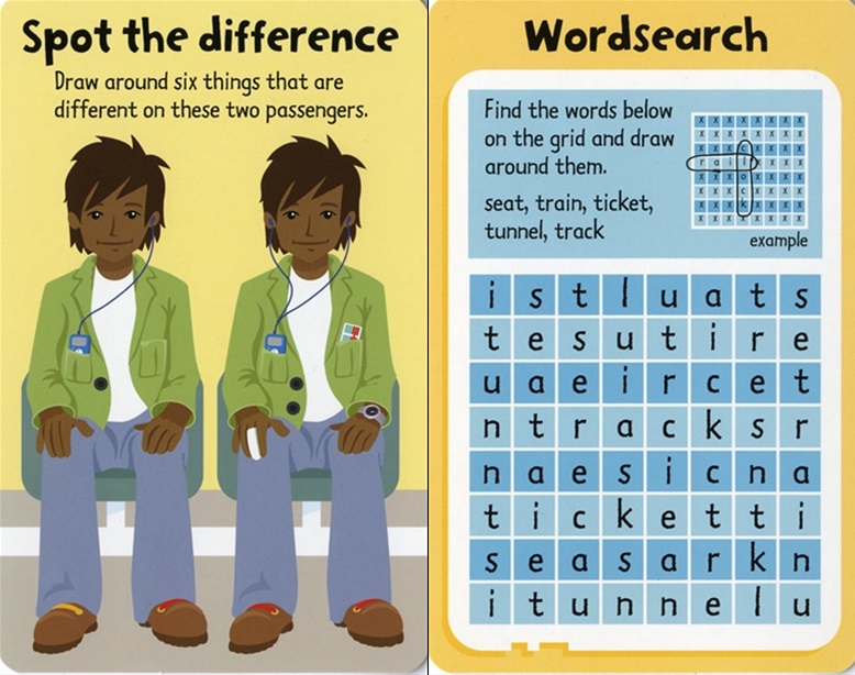 50 wipe-clean cards with 100 simple activities to keep young children occupied on train journeys. Includes games, puzzles and quizzes using everyday objects found inside the train or seen out the window. Includes a special pen to write on the cards.