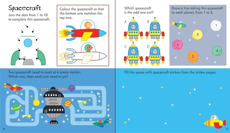 An out-of-this-world activity book packed with puzzles, things to spot, colouring, drawing and doodle activities. Little children can add sticker planets to the Solar System, draw a rocket blasting into space, colour an alien birthday party and lots more. With lots of stickers to add, this is guaranteed to keep any budding astronaut busy for hours.
