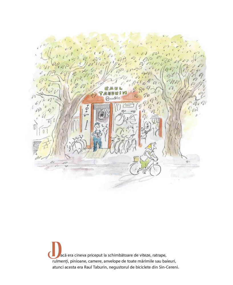 Raul Taburin este cel mai cunoscut negustor și reparator de biciclete din micul oraș Sin-Cereni. Atât de cunoscut, încât oamenii au ajuns să nu mai spună bicicletă, ci… taburină! Raul Taburin are însă și un secret bine ascuns. Deși bicicletele sunt tovarășele sale nedespărțite, Taburin nu a reușit să învețe niciodată să meargă pe bicicletă. Cine să-l creadă, însă? Și cum să trăiești cu un asemenea secret tocmai în orășelul Sin-Cereni?
