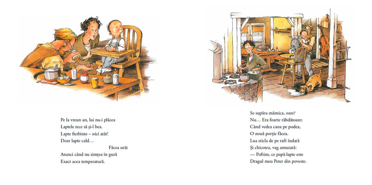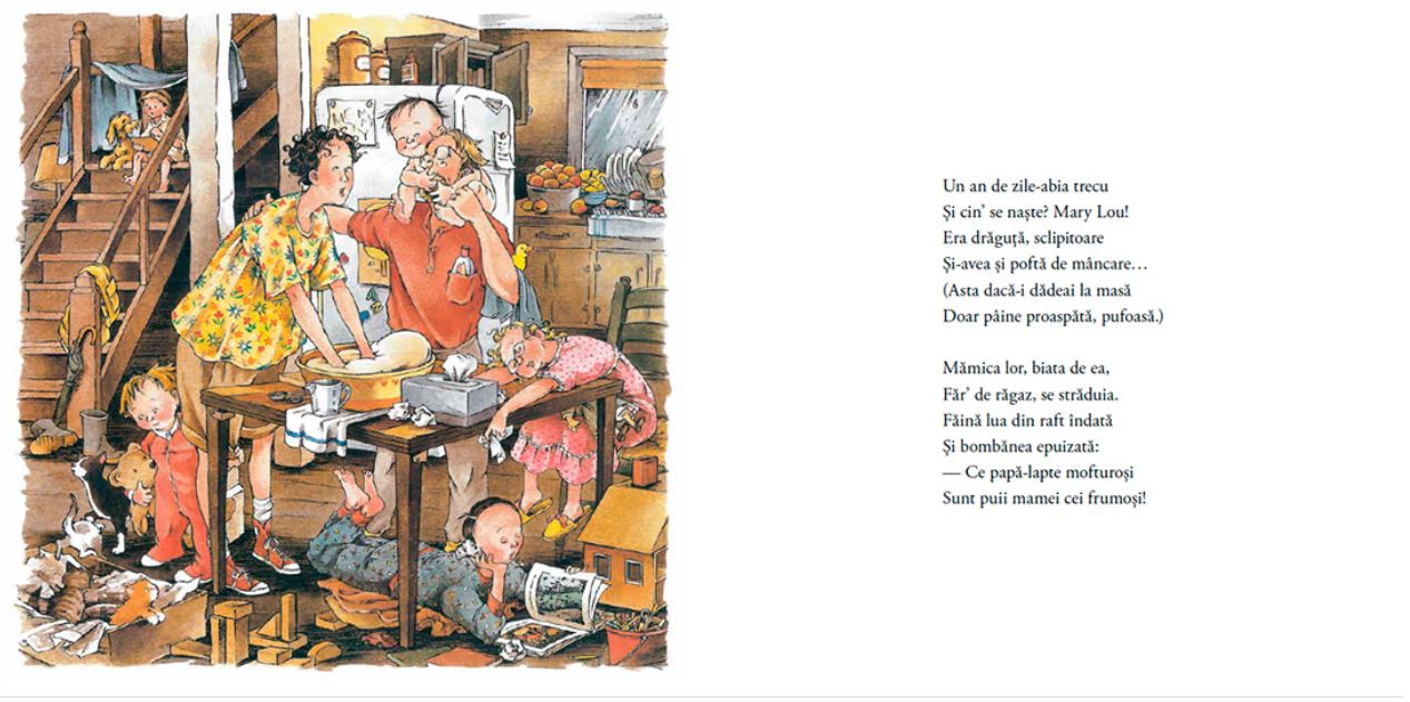 Când e vorba de mâncare, fiecare dintre cei șapte copiii ai familiei Peters are felul său preferat. Peter vrea doar lapte, nici prea cald, nici prea rece – doar el știe cum. Lucy vrea numai limonadă de casă – doar se face foarte ușor, nu? Pentru Jack, doar piureul de mere e bun, iar să curețe câteva kilograme zilnic chiar nu e mare lucru pentru domnul Peters. Gemenele preferă ouăle – una le vrea fierte, cealaltă prăjite – iar dacă doamna Peters le încurcă, au ele grijă să-i dea de înțeles cum e corect. Lui Jack, grișul cu lapte i se pare nemaipomenit – poți să-l împarți și cu pisica. Iar pentru Mary Lou, pâinea făcută în casă – zi de zi – e tot ce poate fi mai bun.